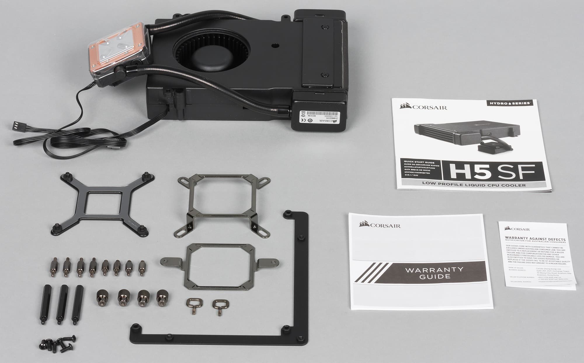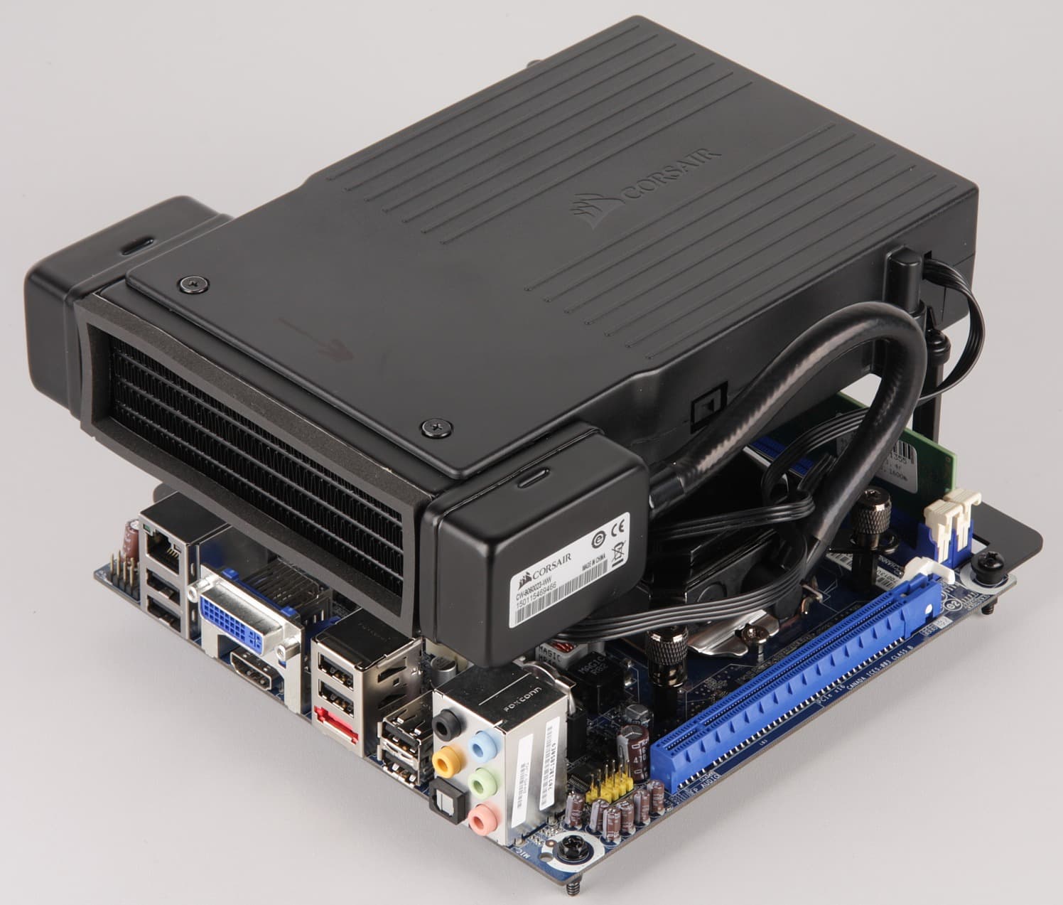 Компания Corsair предлагает свое решение для описанной ситуации. Это низкопрофильный жидкостный кулер Hydro Series H5 SF, предназначенный для охлаждения процессоров, установленных на материнские платы форм-фактора Mini-ITX. Изначально, по всей видимости, этот кулер был разработан для использования в составе компактной и высокопроизводительной системы Bulldog.