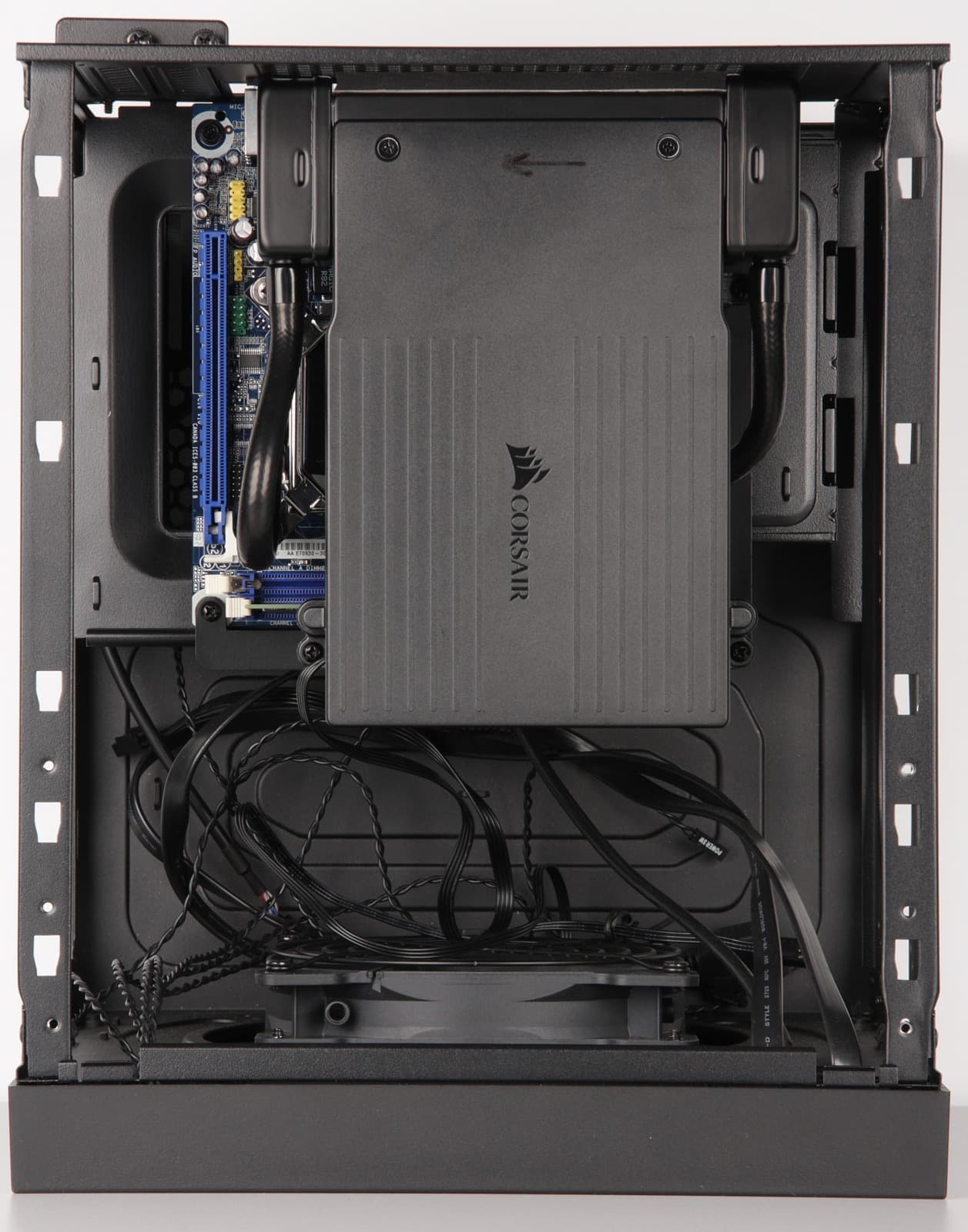 Получается, что корпус компьютера должен отвечать целому ряду жестких требований, чтобы кулер Corsair Hydro Series H5 SF в нем не только поместился, но и работал без снижения эффективности, при всем при том корпус должен быть и очень компактным, так как в противном случае в него можно будет установить и менее специализированную систему охлаждения.