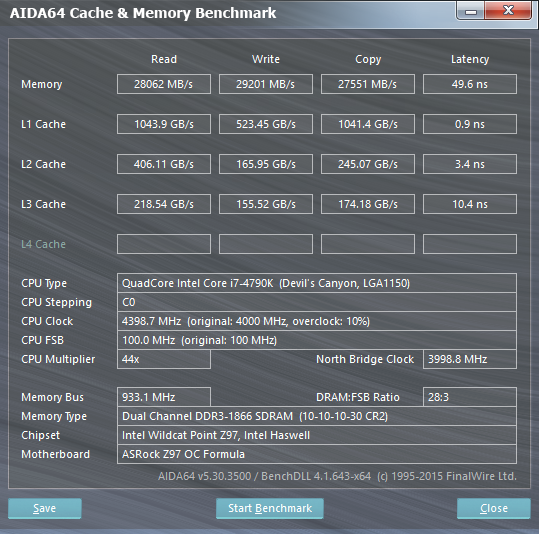 Далее приведены результаты тестов комплекта модулей памяти Crucial Ballistix Sport 16 GB DDR3-1866 в режимах DDR3-1866 (10-10-10-30, режим XMP-профиля и режим по умолчанию) и DDR3-2000 (10-10-10-30).