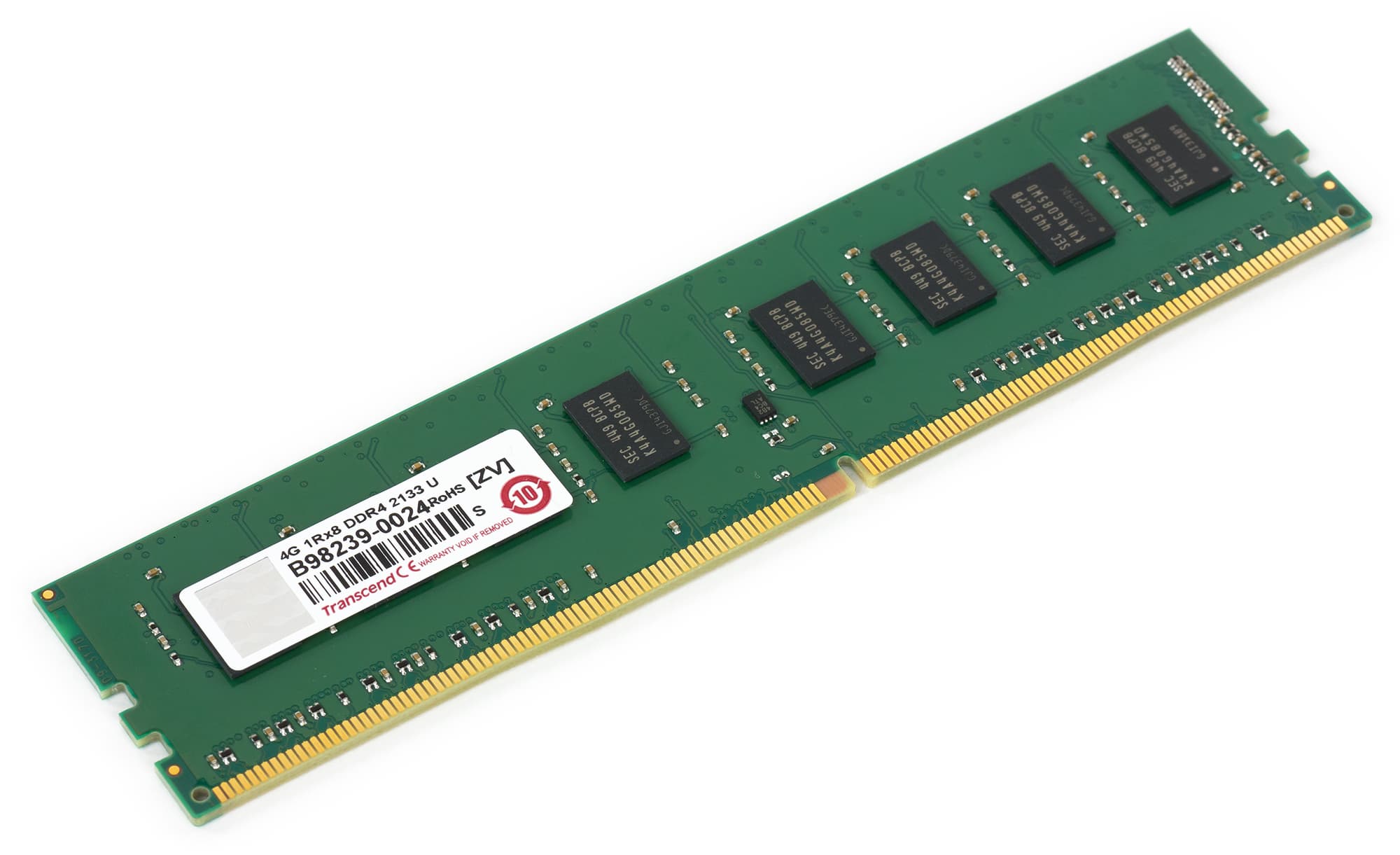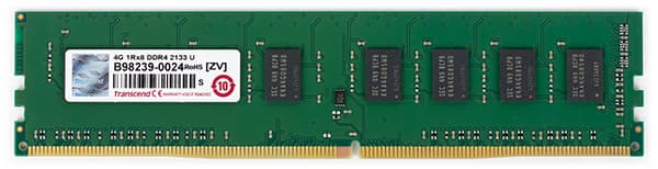Для настольных систем компания Transcend выпускает не так уж и много модулей памяти DDR4. Если точнее, то их всего два. Это модуль TS512MLH64V1H емкостью 4 ГБ и модуль TS1GLH64V1H емкостью 8 ГБ. Оба модуля DDR4-2133, а напряжение питания 1,2 В. Как видим, тут без выпендрежа. Нет ни различных комплектов памяти, ни декоративных радиаторов, да и разгонные XMP-профили не предусмотрены.