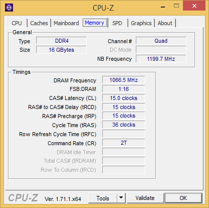 На нашем тестовом стенде с настройками UEFI BIOS по умолчанию память G.Skill Ripjaws F4-2800C16Q-16GRK завелась на частоте 2133 МГц с таймингами 15-15-15-35 и при напряжении питания 1,2 В.
