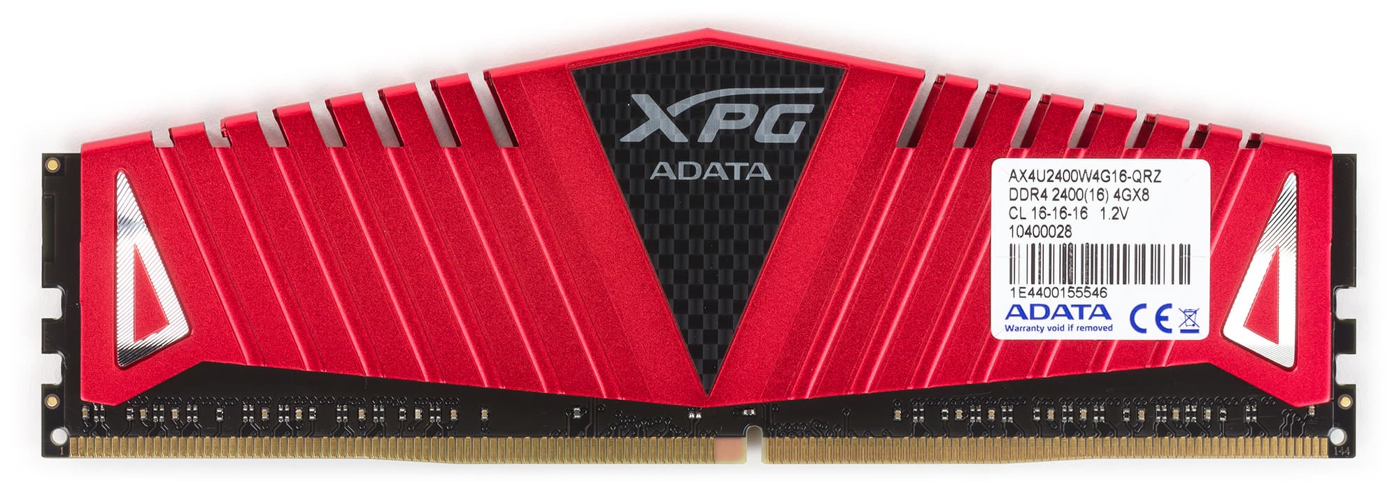 Далее мы рассмотрим комплект из четырех модулей памяти AData XPG AX4U2400W4G16-QRZ. Как несложно догадаться по названию, речь идет о модулях памяти DDR4-2400 с таймингами 16-16-16. Напряжение питания этих модулей памяти составляет 1,2 В.