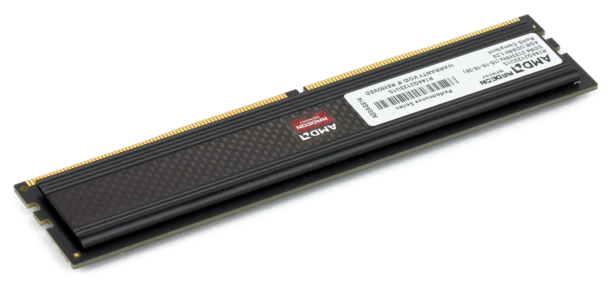 Далее мы рассмотрим комплект памяти из четырех модулей с суммарной емкостью 16 ГБ (R744G2133U1S), который относится к серии AMD Radeon R7 Performance. Как уже отмечалось, модули памяти AMD R744G2133U1S имеют частоту 2133 МГц и тайминги 15-15-15-36, а напряжение питания составляет 1,2 В (это стандартное значение).