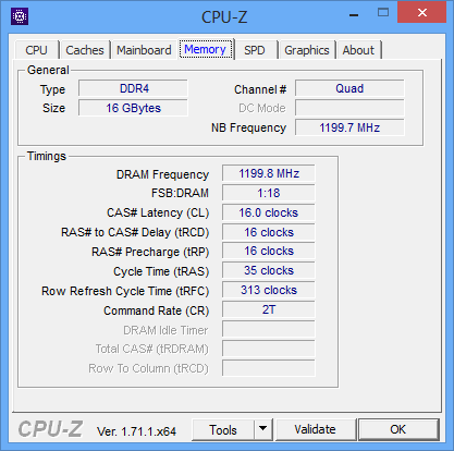 В случае платы Gigabyte GA X99-Gaming G1 WIFI этот же комплект памяти определялся как DDR4-2400, но уже с таймингами 16-16-16-35.