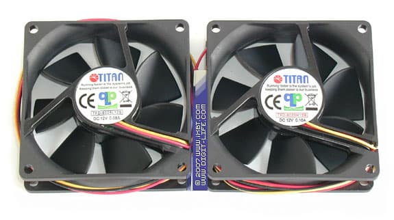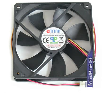 Три других бюджетных вентилятора из продуктовой линейки Titan — TFD-12025SL12Z, TFD-12025SL12B и TFD-12025H12B, принадлежат уже к типоразмерной группе 120х120х25 мм. Эти стодвадцатки, так же, как и восьмидесятки, имеют единый конструктив и в модельной серии различаются номинальными оборотами, а также подшипниковой оснасткой.