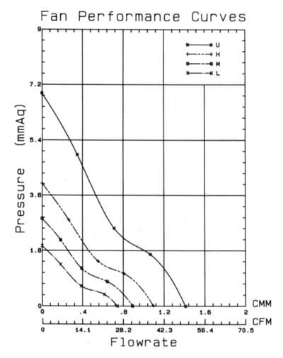 Ну, а в качестве «производительности» берется объемная скорость потока при нулевом статическом давлении, т.е. когда вентилятор работает в полную силу и не испытывает никаких затруднений со стороны рабочего тракта (по сути этого тракта нет вообще). На практике такая ситуация принципиально неосуществима и может быть смоделирована только в специализированной барокамере, о которой говорилось выше.
