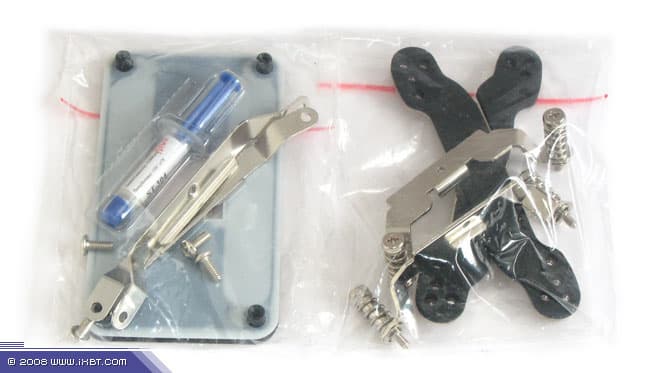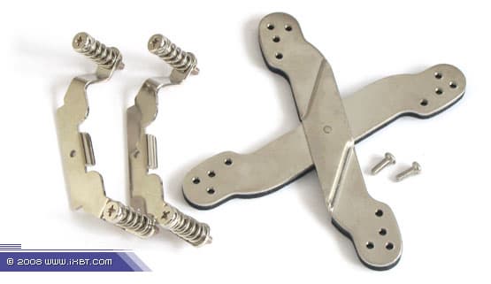 Как правило, современные процессорные кулеры «среднего класса» не выделяются какой-то особенной изобретательностью в отношении своих штатных крепежных систем. И для платформы Intel LGA775, и для платформ AMD стандартом де-факто уже давно стали референсные крепежные приспособления, конструктивно схожие с фиксаторами боксовых кулеров (это знакомые всем пластиковые замки-кембрики — базис крепежа Intel, или монтажные скобки с поворотной ручкой-рычагом, заточенные под сокеты AMD). Признаться, такого же единодушия мы ожидали встретить и в мультиплатформенном крепежном комплекте Cyclone Rev 2.0, ведь общие габариты кулера невелики (100х72х120 мм), да и вес, составляющий примерно 460 г, тоже очень далек от устрашающих величин. Иными словами, задействование стандартных и эргономически привлекательных креплений тут напрашивается само собой. Но, к нашему удивлению, практика показала совсем иное положение дел — Cyclone Rev 2.0 комплектуется излишне усложненной крепежной системой, эргономика которой, образно говоря, слегка прихрамывает.