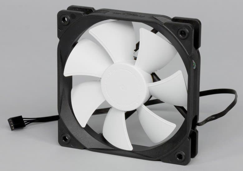 Высота вентилятора равна 25,5 мм по выступающим бортикам крепежных отверстий и 24,5 мм по рамке. Рамка имеет габариты 120 на 120 мм. Максимальная толщина радиатора с закрепленными вентиляторами составляет 59 мм.