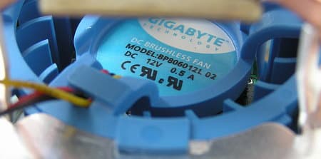 Вентилятор кулера Gigabyte 3D Rocket-Pro Cooler GH-PCU22-VG, вид снизу кулера.