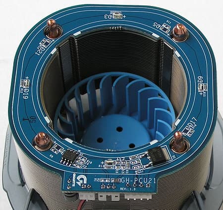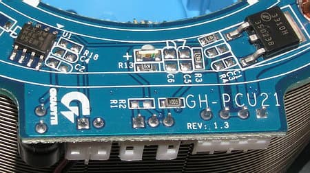 Как и у предшественника, скорость вентилятора регулируется простейшей схемой управления, состоящей из операционного усилителя, силового транзистора и нескольких пассивных элементов.