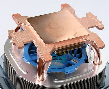 Прилегающая к процессору поверхность кулера достаточно гладкая. Зеркальная поверхность здесь не требуется (термопаста все равно заполнит микронеровности, что практически не скажется на теплоотдаче),