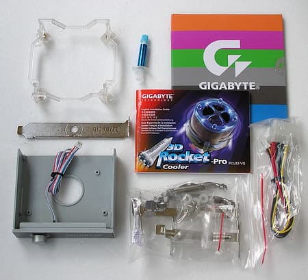 Комплектность поставки кулера Gigabyte 3D Rocket-Pro Cooler GH-PCU22-VG практически такая же, как и у предшественника.