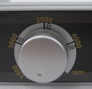 На передней «планке» есть ориентировочная шкала, деления которой указывают на скорость вращения от 2500 до примерно 4500 об./мин.