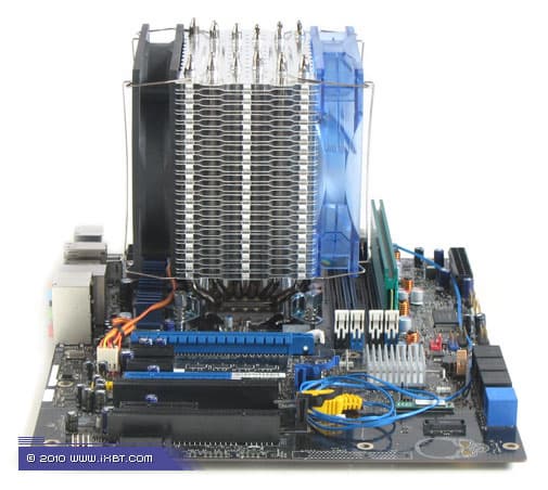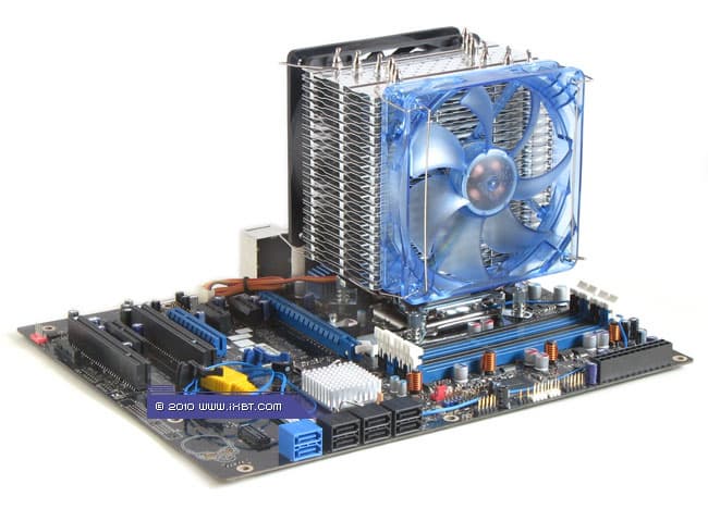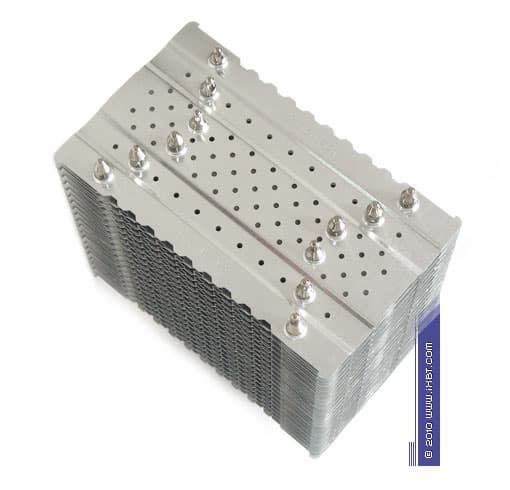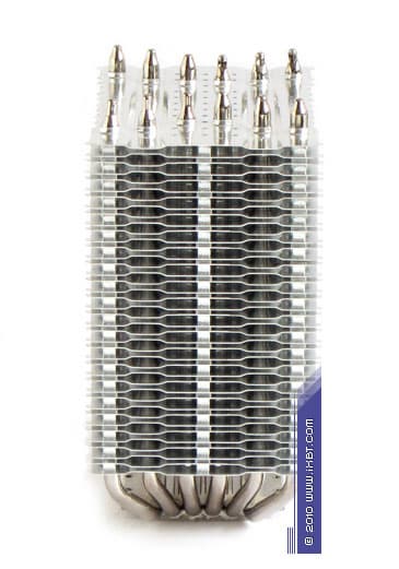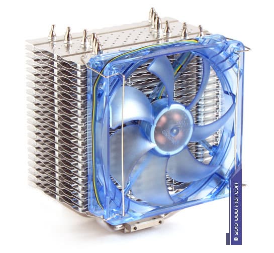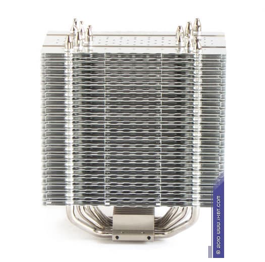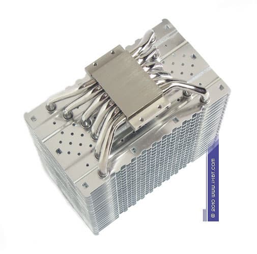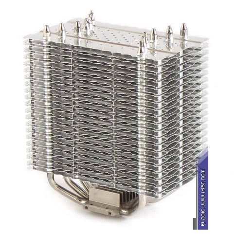 Конструктивные особенности (радиатор). «Рабочее тело» кулера образовано комбинацией медного теплосъемника 30×40×5 мм, вспомогательного алюминиевого радиатора 30×57×16 мм, шести медных тепловых трубок диаметра 6 мм и секции алюминиевого оребрения (40 пластин, общая площадь поверхности теплообмена порядка 8000 см²).