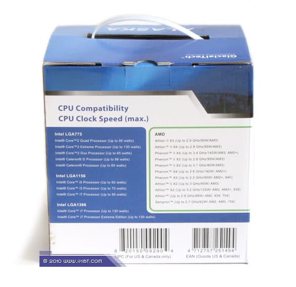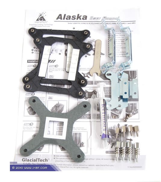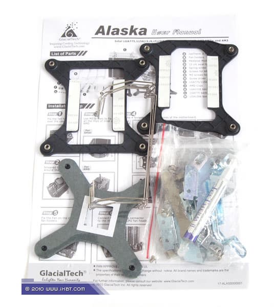 Поставка включает радиатор, фирменный вентилятор, комплект мультплатформенного крепежа (поддерживаются все актуальные платформы — Intel LGA775/LGA1366/LGA1156 и AMD Socket AM2/AM3), фиксаторы для вентиляторов (4 штуки), шприц с фирменной термопастой, пластиковую лопаточку-аппликатор и краткое техническое руководство.
