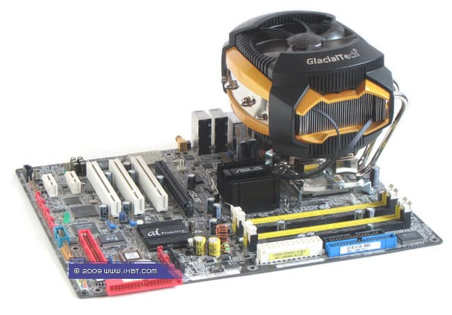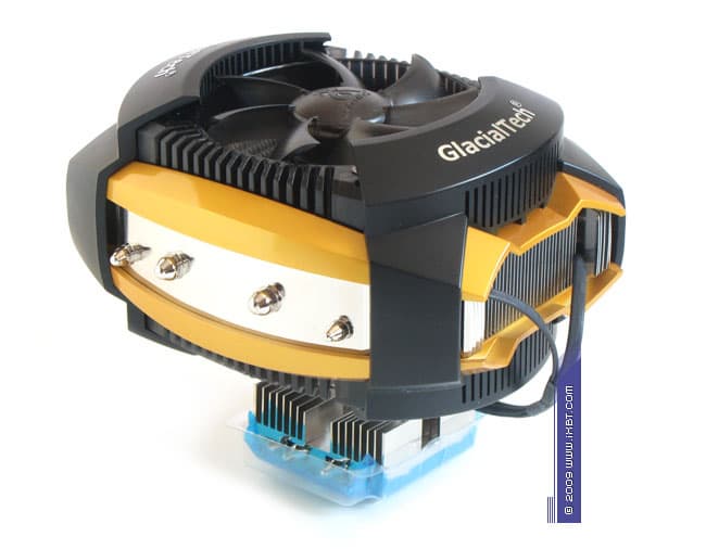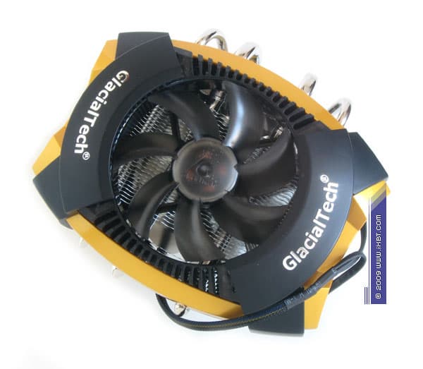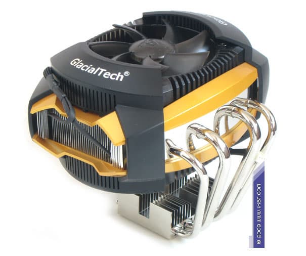 Что ни говори, такого имиджевого оформления мы еще не встречали! Тут вам и модный футуристический жанр, и опрятный декоративный кожух с «интегрированными» рамками набортных вентиляторов, и изысканная цветовая гамма, и зеркальная финишная обработка боковин радиатора. Все сработано на очень хорошем, истинно хай-эндовом уровне. И по этому пункту спецы GlacialTech безоговорочно заслуживают, как нынче принято выражаться, уважуху и респект! :)
