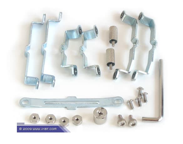 После вскрытия упаковки обнаруживаем отсортированный комплект мультплатформенного крепежа (включая установочные приспособления под Intel LGA1366), емкость с термопастой, пластиковую лопаточку (которая, к слову, весьма полезна в инсталляционных процедурах) и краткое техническое руководство.