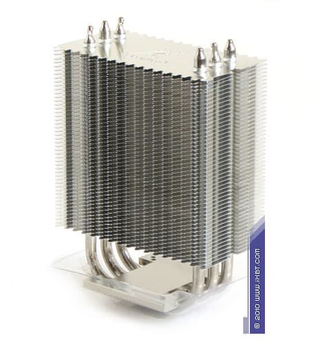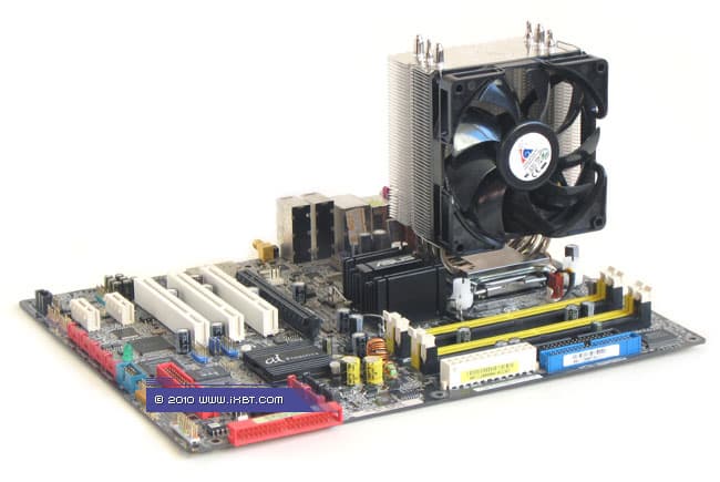 Конструктивные особенности (радиатор). «Рабочее тело» кулеров образовано композицией медно-алюминиевого теплосъемника 55х55х9 мм, трех тепловых трубок диаметра 6 мм и секции алюминиевого оребрения (49 пластин, общая площадь поверхности теплообмена порядка 4500 см2).