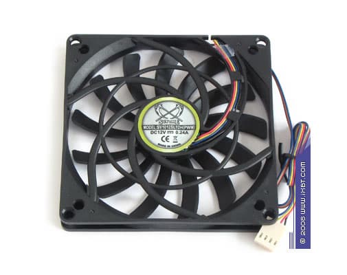 Не слишком убедительным выглядит и местный вентилятор (модель YLTC SY1012SL12H) — по линии технического качества претензий к нему нет (отмечаем вполне добротный подшипник скольжения и нормализованную электрическую обвязку), но его аэродинамическое конфигурирование предстает излишне компромиссным и, честно говоря, оставляет желать лучшего (низкопрофильные крыльчатки просто в силу своих конструктивных особенностей не отличаются реально интересным симбиозом производительности и шумовых характеристик, так что даже некоторые признаки оптимизации, выявляемые в SY1012SL12H, не облагораживают его функциональный потрет). И хотя устремления специалистов Scythe можно только поприветствовать — они всеми силами двигались к достижению максимально приземленных габаритов «мальца» Shuriken, вентилятор с укрупненной крыльчаткой, судя по всему, был бы здесь более уместным.