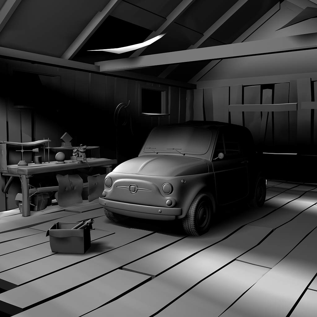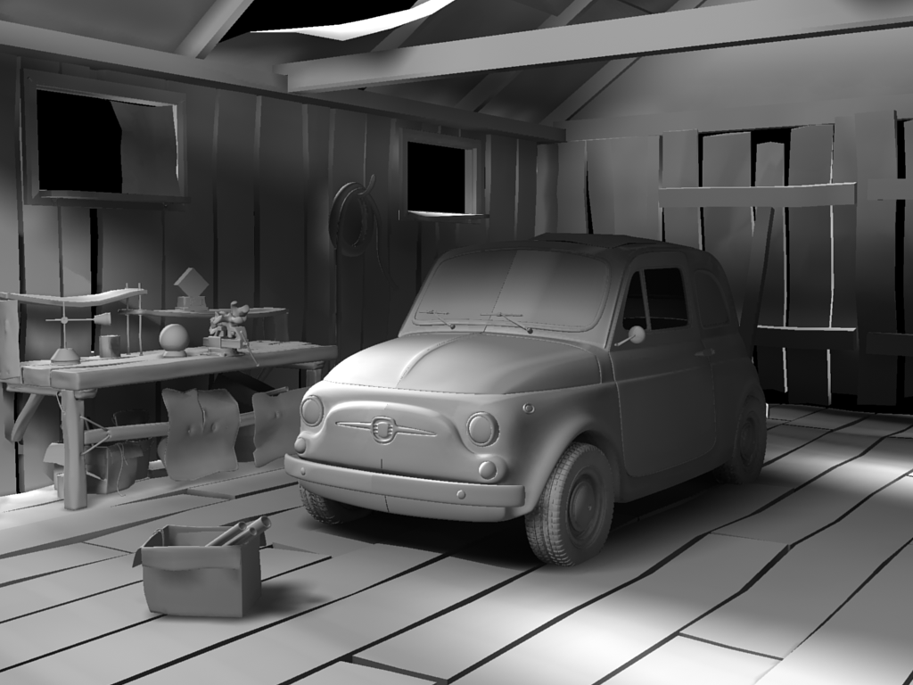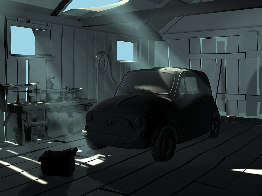 «Черновая превьюшка», фактически, является той же финальной сценой, но отрендеренной с максимально облегченными установками качества. Результат практически такой же, как и в предыдущем случае.