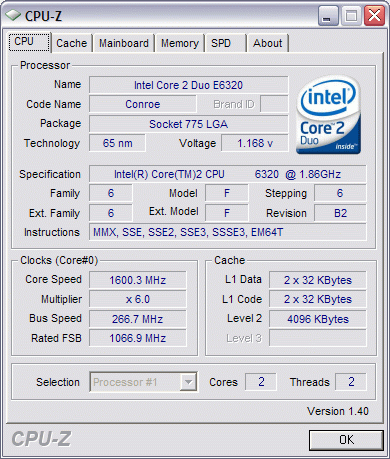 | Процессор | Core 2 Duo E6320 | Core 2 Duo E6420 |