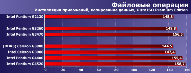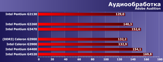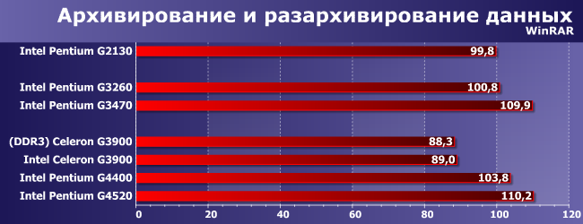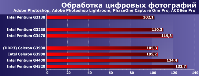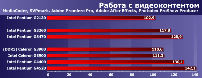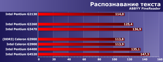 Иногда же и не увеличивается. Отметим — несмотря на то, что семейство Pentium G32x0 (равно как и предыдущих G20x0 или G6x0) изначально ограничено производителем в плане скорости оперативной памяти, что в таких задачах имеет значение, однако процессорам для новой платформы все равно не удается их заметно обогнать.