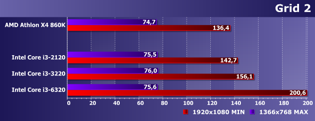 В игре на более новой версии движка EGO по крайней мере понятно — зачем нужна более высокая производительность. Причем (что еще более важно) процессор на нее влияет и в режиме максимального качества (пусть и низкого разрешения). И опять наблюдаем примерный паритет Athlon и Core i3-2xxx, а более новые процессоры семейства Core i3 традиционно же быстрее.