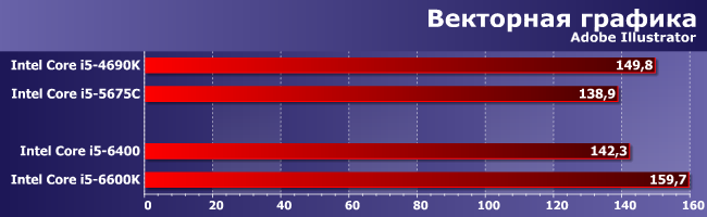Мы уже отмечали некоторую «нелюбовь» предыдущей версии к процессорам Broadwell с кэш-памятью четвертого уровня — как видим, ничего не изменилось. А вот модели под LGA1151, напротив, явно ускорились. Впрочем, не только в этой программе, так что может статься, что сказались и происшедшие в области системного ПО исправления ошибок и прочие «мелочи жизни».