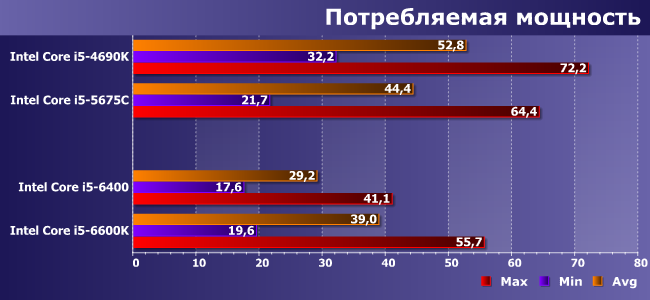 Еще одним сильным местом младших Core i5 является крайне умеренный аппетит. Присущий и старшим, несмотря на формально высокий официальный теплопакет, но менее выраженный. Младшие же уже с легкостью ограничиваются количествами энергии, не так давно достаточными лишь двухъядерным моделям (а еще раньше — лишь некоторым таковым).