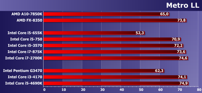 Как и следовало ожидать, когда все определяется видеокартой даже двухъядерные процессоры под LGA1156 ведут себя не сильно хуже прочих.