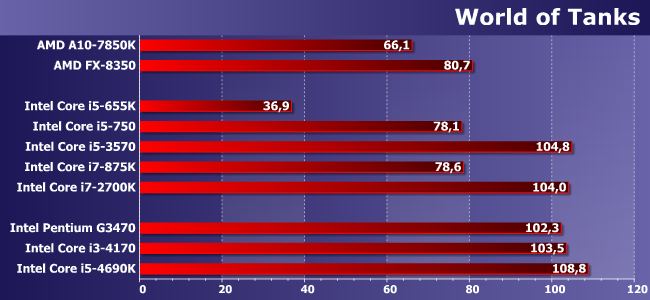 Совсем не то в танках — выжать в таком режиме максимум из видеокарты могут только современные платформы Intel (а таковой мы выше условились считать и LGA1155), а вот на старых однопоточная производительность не лучше, чем у решений AMD например.