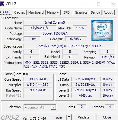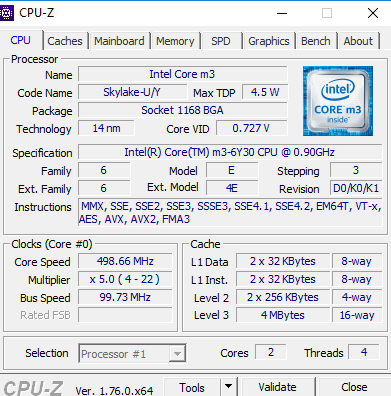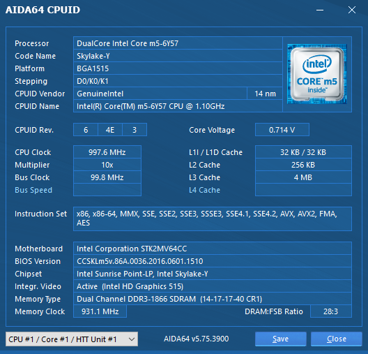 Обе модели используемых процессоров (напомним, что это Intel Core m3-6Y30 и Intel Core m5-6Y57) имеют два физических ядра и поддержку технологии Hyper-Threading, что позволяет им выполнять четыре потока команд. Штатные тактовые частоты составляют 900 МГц и 1,1 ГГц соответственно, а благодаря наличию технологии Turbo Boost на нагрузке определенного типа они могут увеличиваться до 2,2 ГГц и 2,8 ГГц. Без нагрузки частота снижается до 500 МГц. Основным отличием версии с процессором Intel Core m5-6Y57 является поддержка технологии Intel vPro, включая Intel AMT, Intel VT и Intel TXT, а также других ее элементов, что будет востребовано в бизнес-сегменте.