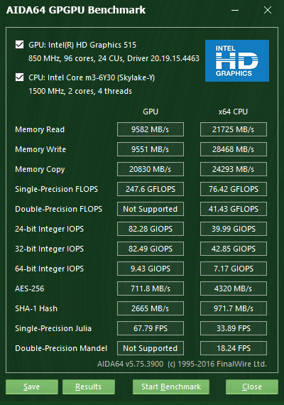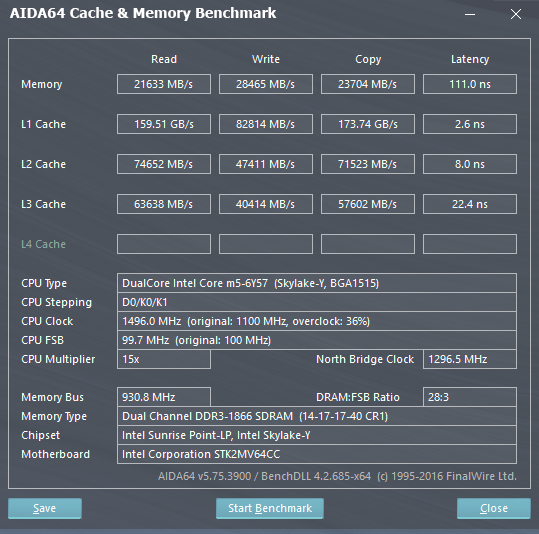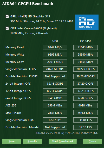 Здесь можно обратить внимание на заметную разницу в скорости чтения и записи для кэшей L1 и L2, причем в пользу модели на Intel Core m3-6Y30. Вполне вероятно, что это повлияет и на результаты тестов в реальных приложениях.