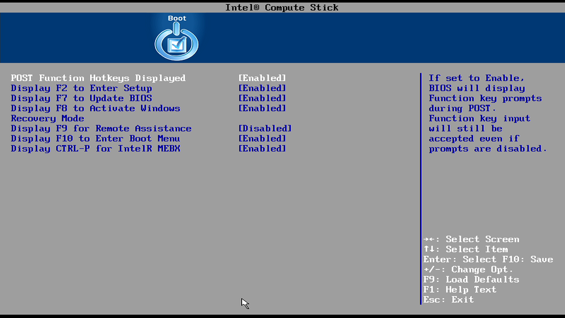 Отметим, что при загрузке предусмотрено использование нескольких горячих клавиш, позволяющих, в частности, не только войти в BIOS, но и выбрать загрузочное устройство, запустить программу обновления и перейти к режиму восстановления Windows.