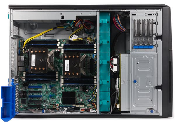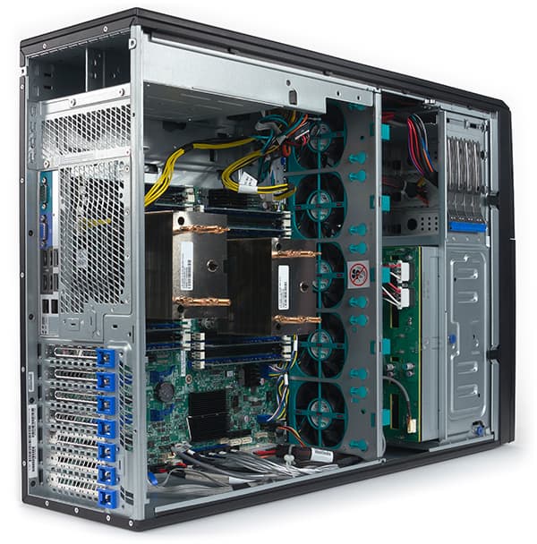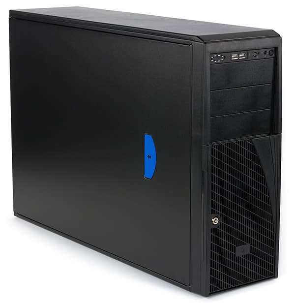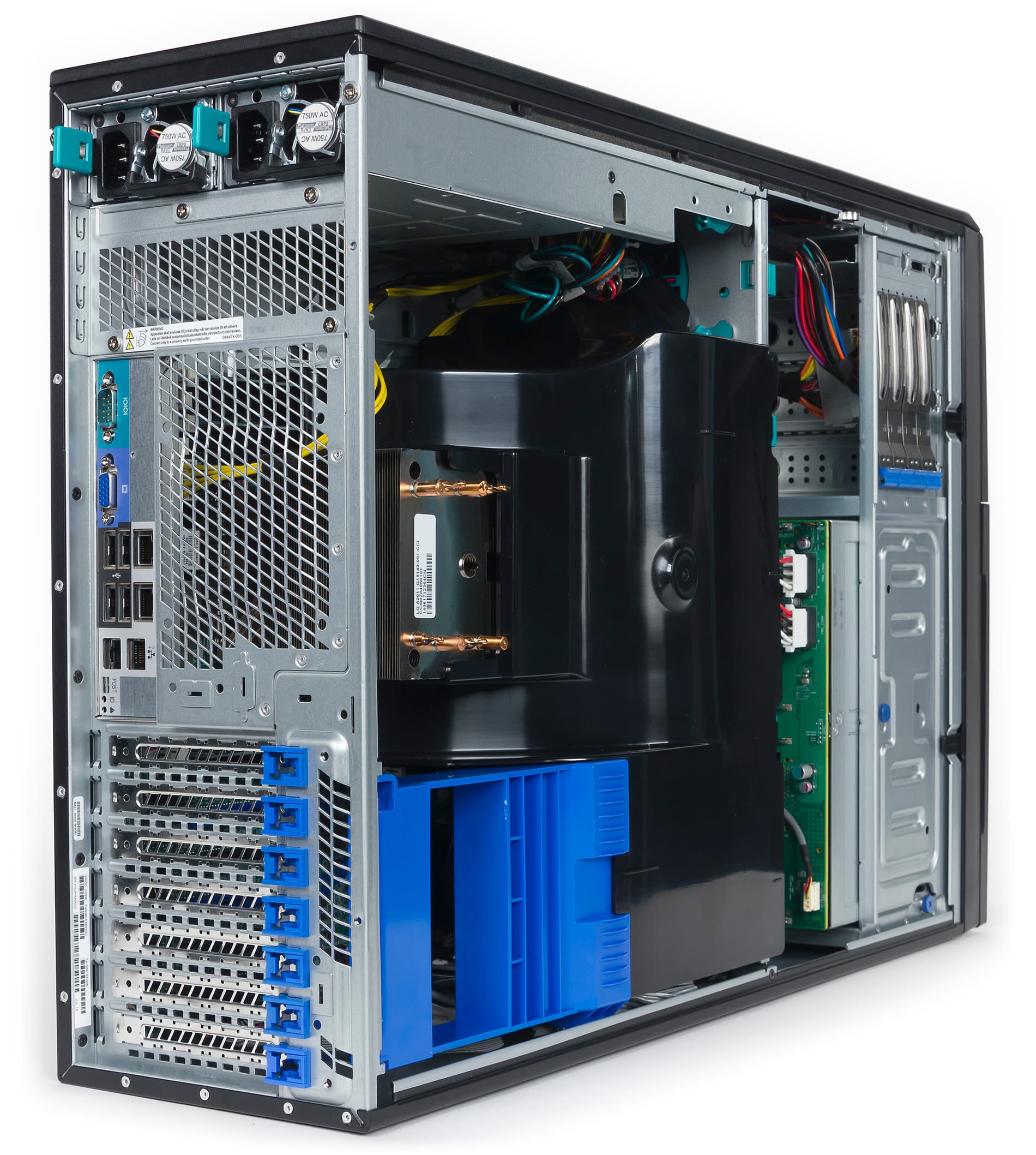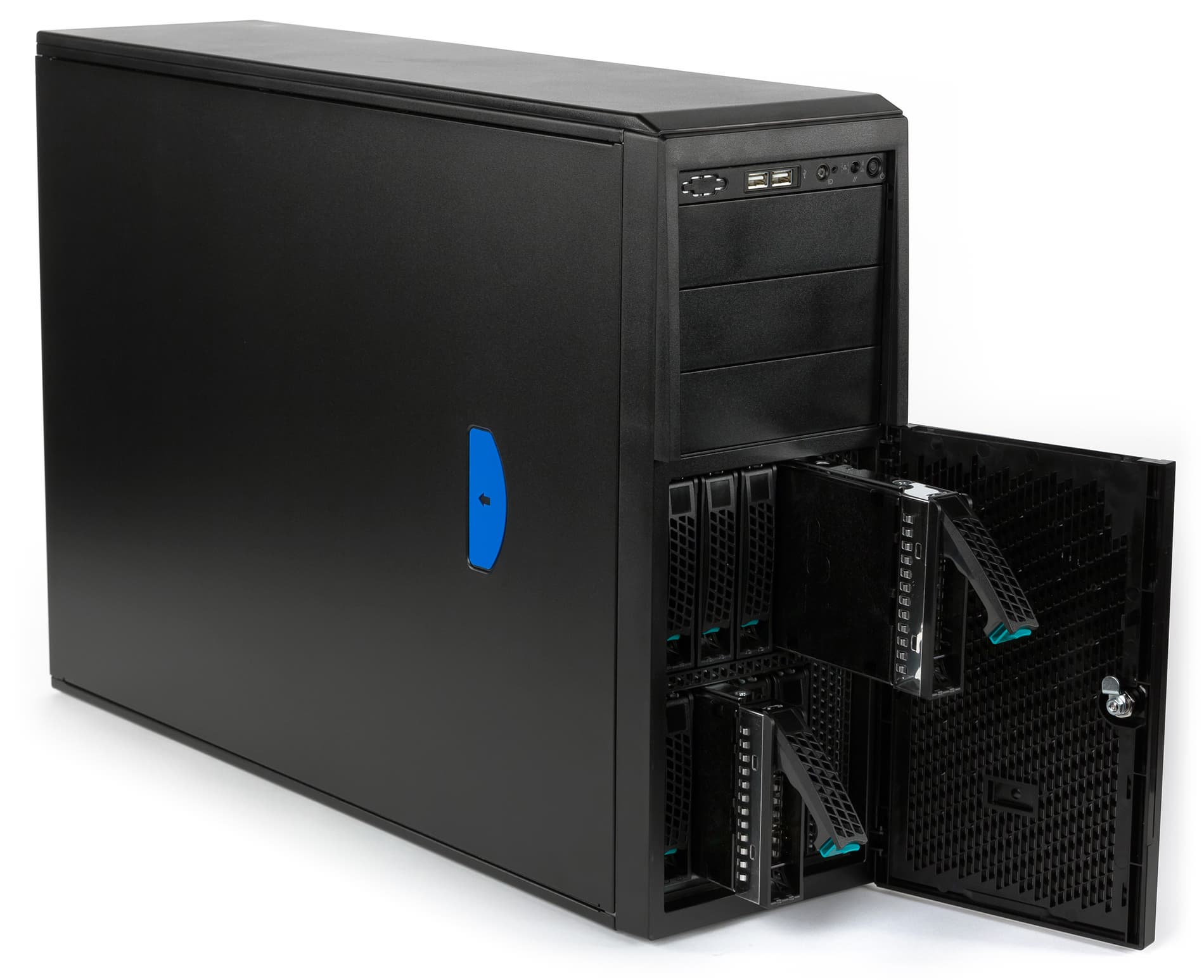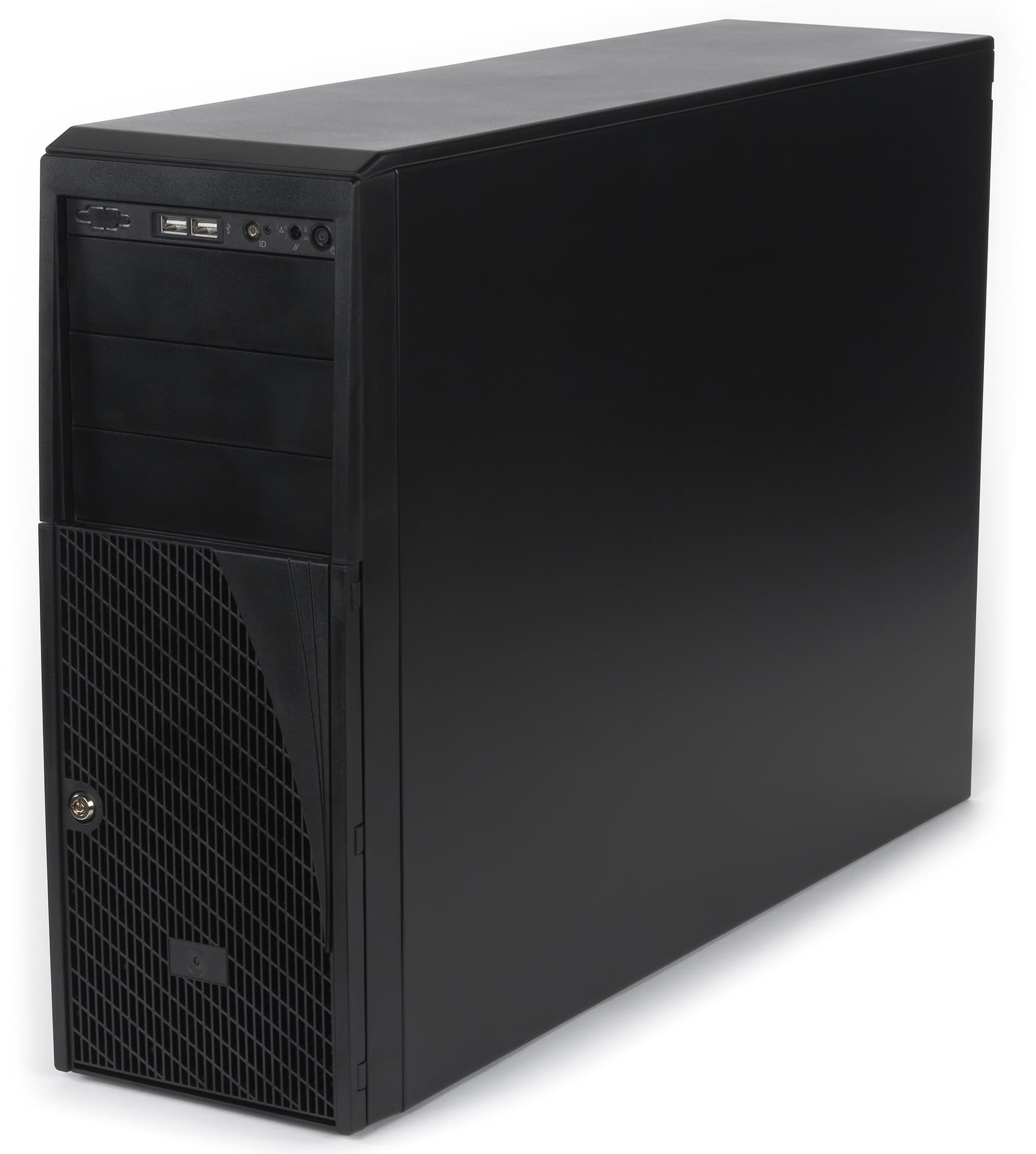 Впрочем, с самого начала все пошло не так, как мы планировали. Во-первых, то, что нам привезли, никак нельзя было назвать графической станцией. Собственно, это был классический двухпроцессорный сервер в пьедестальном корпусе Intel Server System P4000CP на базе системной платы Intel S2600CP. В этом сервере имелась лишь «бортовая» видеокарта, предназначенная для настройки сервера, но никак не для работы в режиме графической станции.