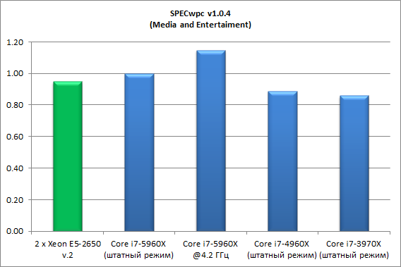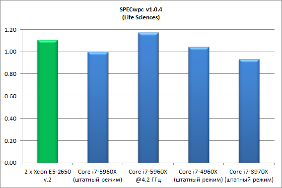 Ну и последний бенчмарк — это специализированный тестовый пакет для рабочих станций SPECwpc v.1.0.4.