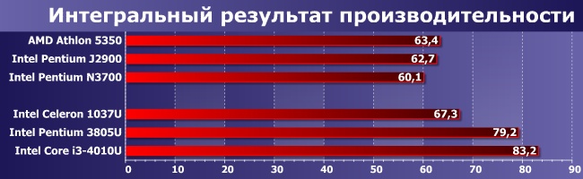 | Процессор | Intel Pentium J2900 | Intel Pentium N3700 | Intel Core i3-4010U | AMD Athlon 5350 |