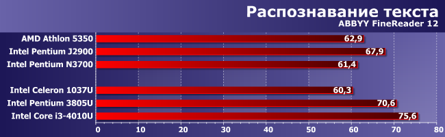 В тестах архиваторов — не хватило. Впрочем, только в случае Pentium J2900, а вот необходимость «впихнуть» в обновленные процессоры больше графических блоков привела к тому, что N3700 и от 1037U снова начал отставать.