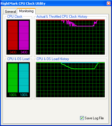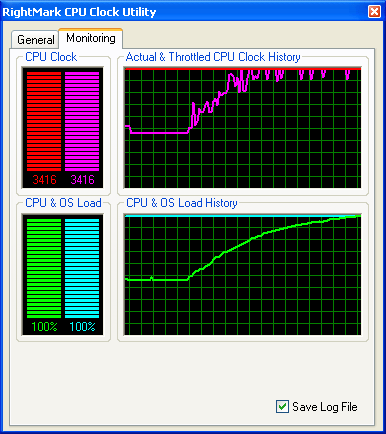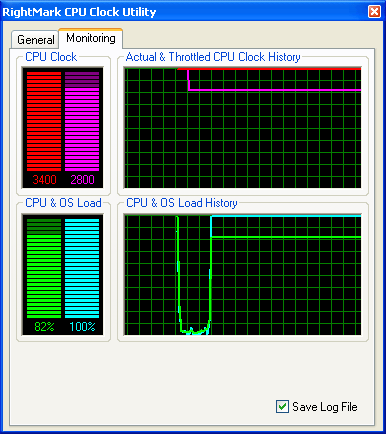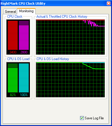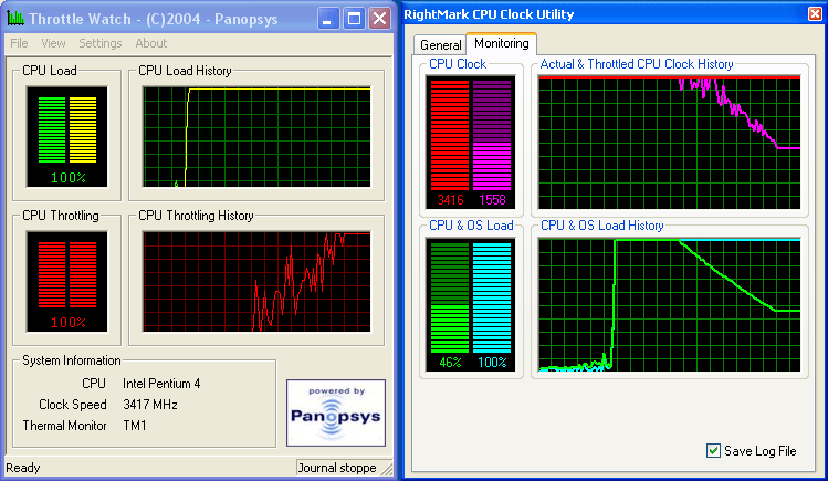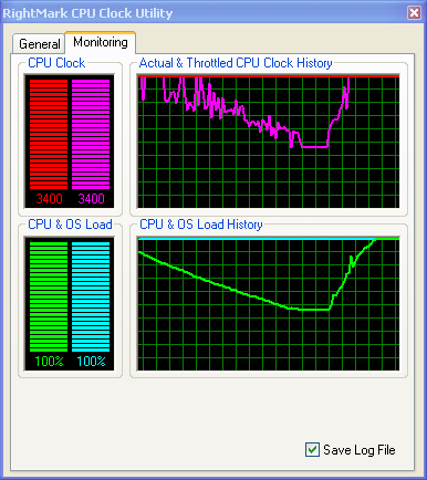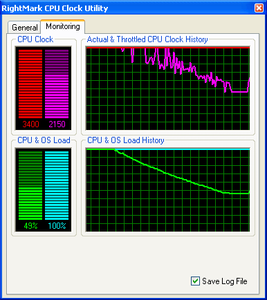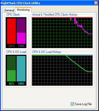 Результат довольно занятный! Тогда как RMClock способна четко уловить падение «эффективной» частоты процессора, ThrottleWatch продолжает как ни в чем не бывало уверять пользователя, что процессор работает на полную мощность, без троттлинга…