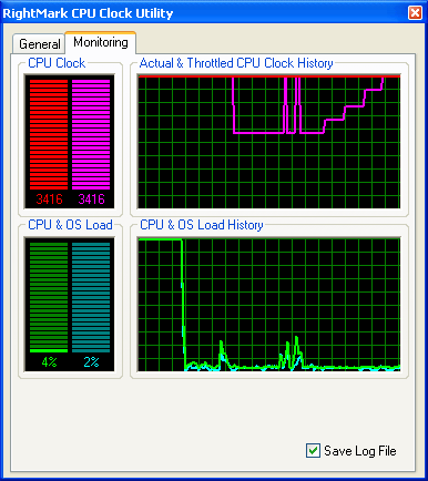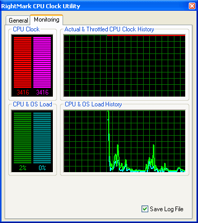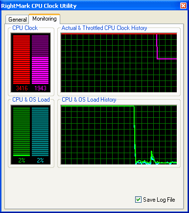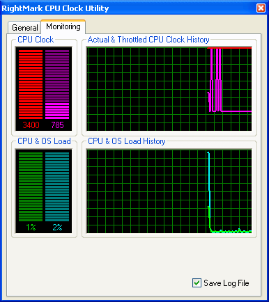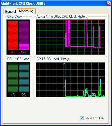 Следует упомянуть несколько слов и о самом измерении загрузки процессора. Конечно, можно полагаться на показания операционной системы как и поступают разработчики большинства ПО системно-прикладного характера. Существенный недостаток этого метода сравнительно низкая точность измерений (разрешение системного счетчика не более 15 мс, т.е., к примеру, за 100-мс интервал может быть получено не более 6-7 отсчетов, а значит, точность измерений составит не более 15-16%). Но еще более существенна некоторая условность получаемой величины прежде всего, относительно реального устройства центрального процессора (ибо что и как меряет операционная система известно только ее разработчику). В нашей новой утилите RMClock, которую мы сегодня будем использовать в качестве главного инструмента наших исследований, впервые применен принципиально иной метод, основанный на использовании показаний (счетчиков) самого процессора что придает измеряемой величине вполне осязаемый, как принято говорить в науке, физический смысл.