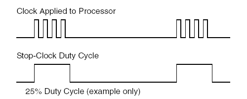 Модуляция тактовой частоты процессора. Пример модуляции с 25% циклом активности процессора. (Источник IA-32 Intel(R) Architecture Software Developer’s Manual, Volume 3: System Programming Guide)