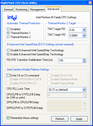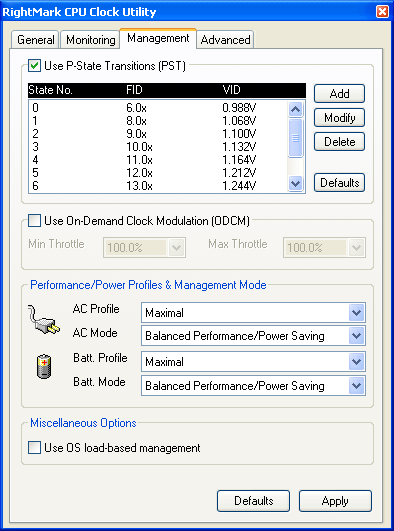 - RightMark CPU Clock Utility (RMClock) версии 1.7beta