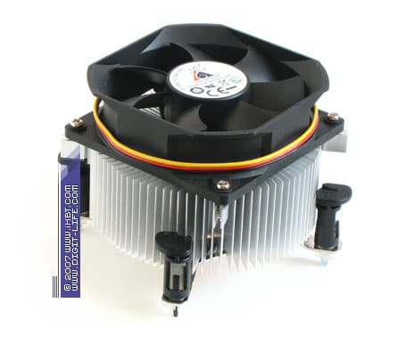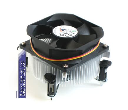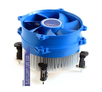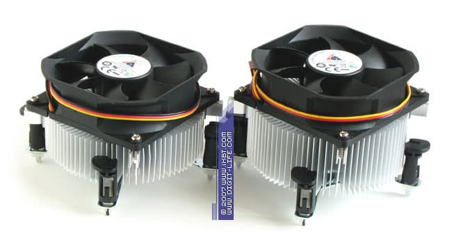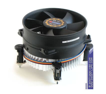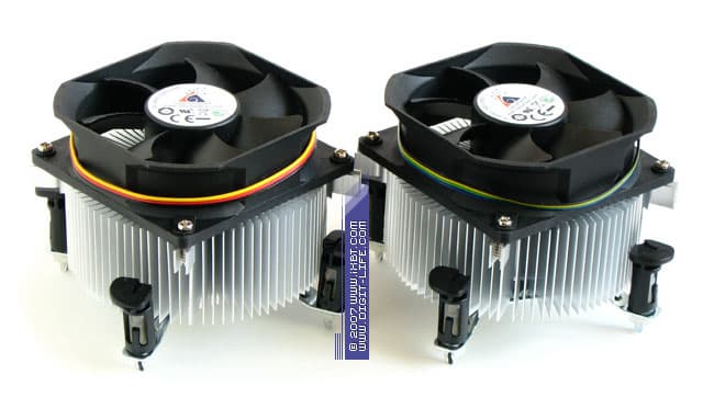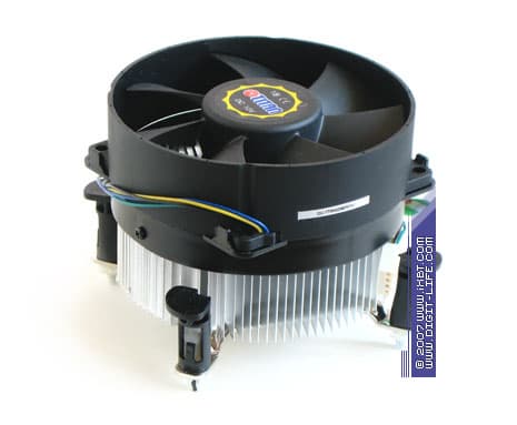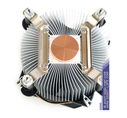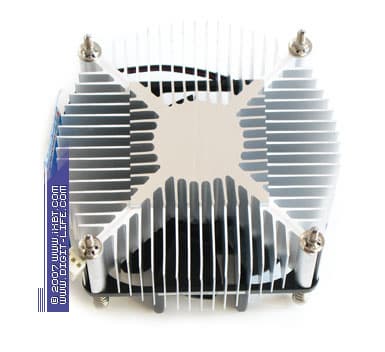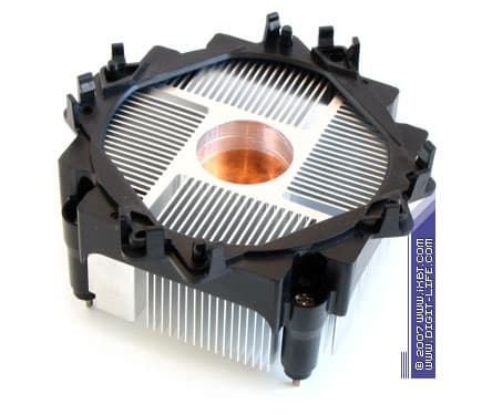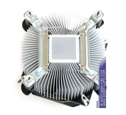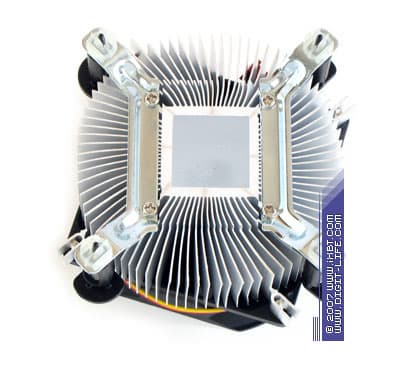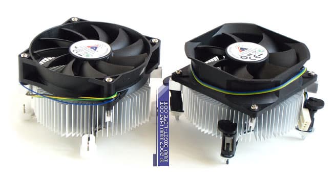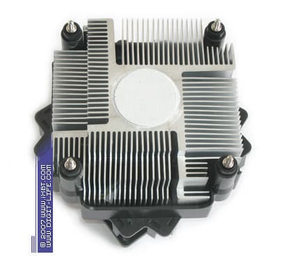 В техническом отношении «новичок» DC-775K925B/RPW идет намного дальше своего малобюджетного собрата, демонстрируя развитое радиальное оребрение Х-образной формы (ребро трапецеидального сечения, толщина 0,7 мм в основании, и 0,3 мм у вершины, средний шаг размещения 2 мм, общая площадь поверхности теплообмена порядка 1500 см2). Неплохое впечатление производит также набортный вентилятор, который отличается усиленной аэродинамической конфигурацией крыльчатки, жизненно необходимой для преодоления гидравлического сопротивления уплотненного радиатора. Все это позволяет надеяться, что DC-775K925B/RPW не пойдет по стопам «простака» DC-775G825Z/N и сможет отметиться улучшенной результативностью.