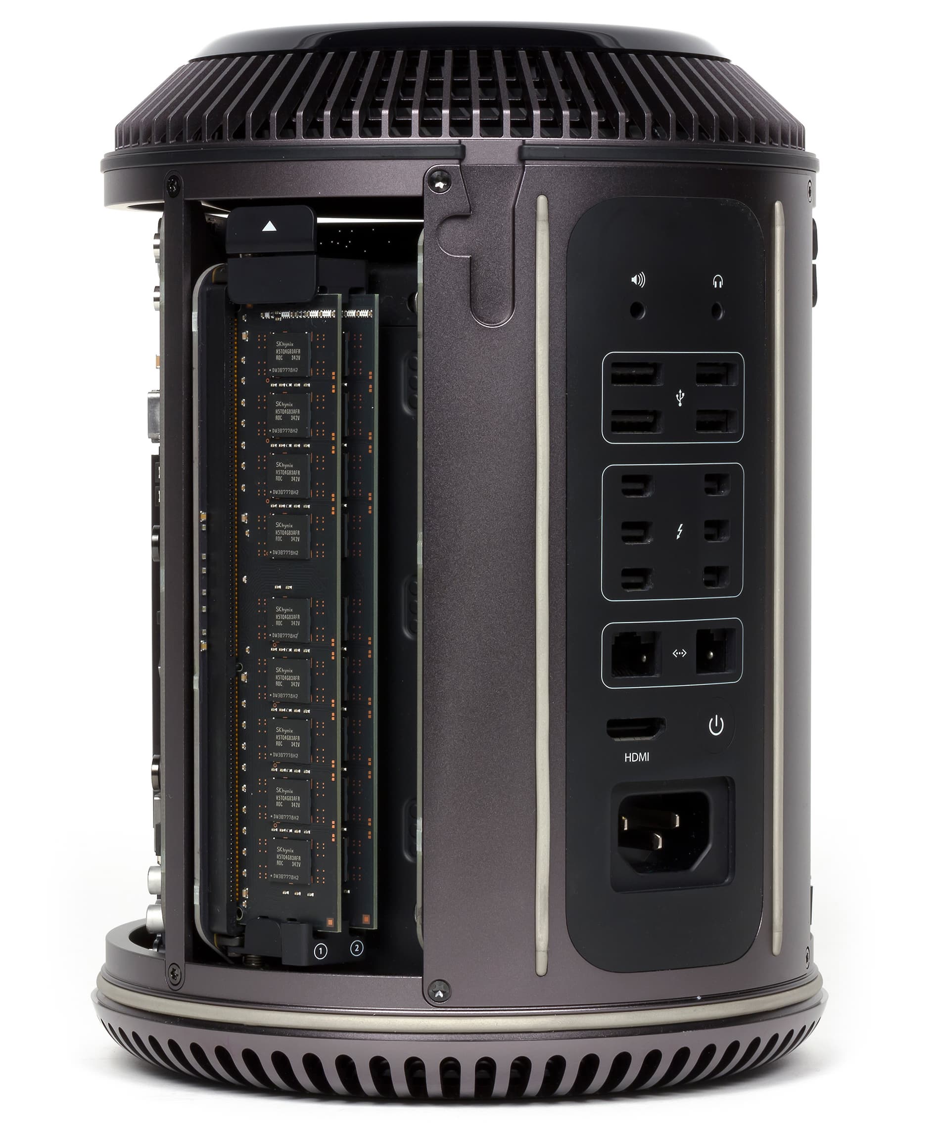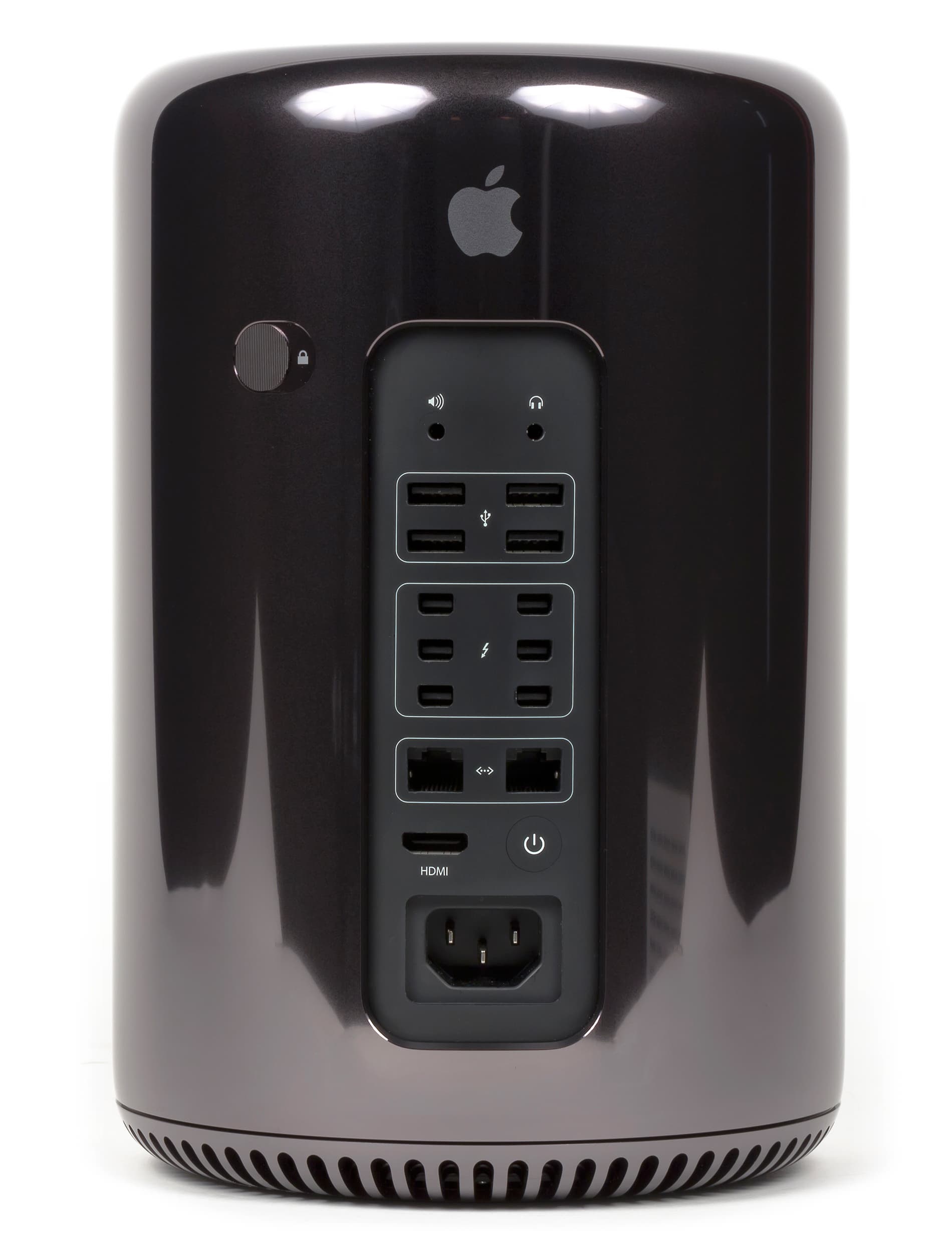 В нашем тестовом образце Mac Pro 2013 был установлен 12-ядерный процессор Intel Xeon E5-2697 v2, две видеокарты AMD FirePro D700, 32 ГБ памяти DDR3-1866 и SSD-накопитель емкостью 512 ГБ, то есть это почти максимально возможная (даже за дополнительные деньги) конфигурация.