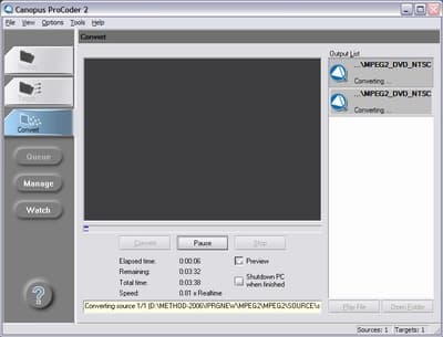 Основное ПО: Canopus ProCoder 2.01.30, DivX 6.4,