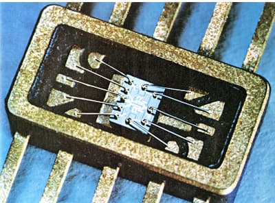 ![]() Fairchild 3708 — первая коммерческая ИС с поликремниевыми затворами, 1968 г. |