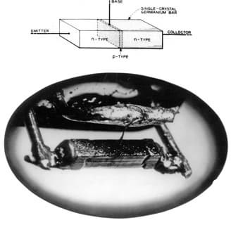 Правда, оба прибора были с неудобным в производстве точечным контактом к полупроводнику. В 1951 г. Шокли изобрёл биполярный транзистор с двумя p-n-переходами, полностью заменивший точечные уже к середине 50-х. К 1954 г. транзисторы уже стали обязательными компонентами в телефонных станциях и аппаратах фирмы Bell. Мудрейшим шагом компании было решение 1952 г. о продаже (за 25 000 долларов) лицензий на выпуск биполярных транзисторов 26 другим фирмам. Уже через 2 года появились транзисторные радиоприёмники, на время ставшие сутью самого слова «транзистор» в массовом сознании. В 1956 г. за открытие транзисторного эффекта Уильям Шокли и его помощники Джон Бэрдин и Уолтер Брэттэйн получили нобелевскую премию по физике.