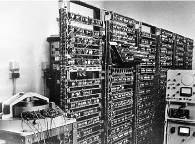 ![]() Прототип транзисторного компьютера в университете Манчестера “Manchester TC” (1953 г.). |