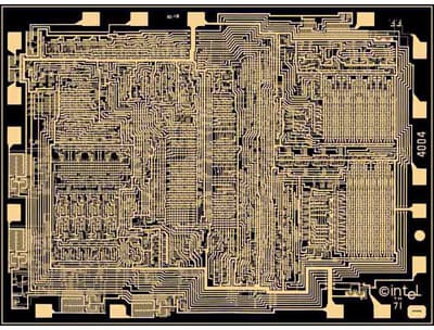 Всемирно известный Intel i4004 являлся первым 1-кристальным коммерчески доступным ЦП, продававшимся в т. ч. отдельно (в отличие от AL1), хотя разработан был для конкретной модели калькулятора. Дизайнеры чипа — Федерико Фэггин и Тед Хофф из Intel и Масатоши Шима из Busicom. Этот 4-битный ЦП не умел наращивать разрядность, зато обошёлся всего в 2300 транзисторов. Тем не менее, Фэггину пришлось применить разнообразные ухищрения, чтобы уместить чип в размерах, приемлемых для рентабельного производства и узкого 16-выводного корпуса. |