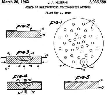 ![]() Патент Эрни на пригодный для массового производства планарный транзистор. |
